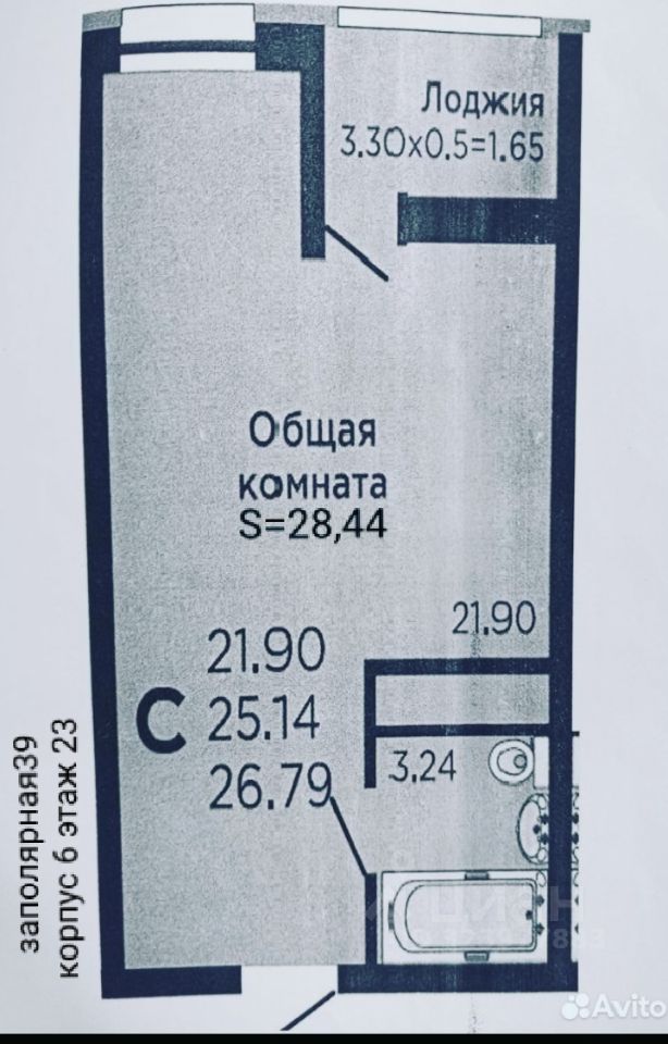 | Площадь общая | 28.44 |