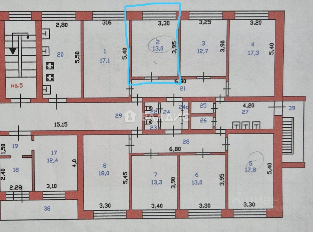 Кол-во комнат в блоке - 8