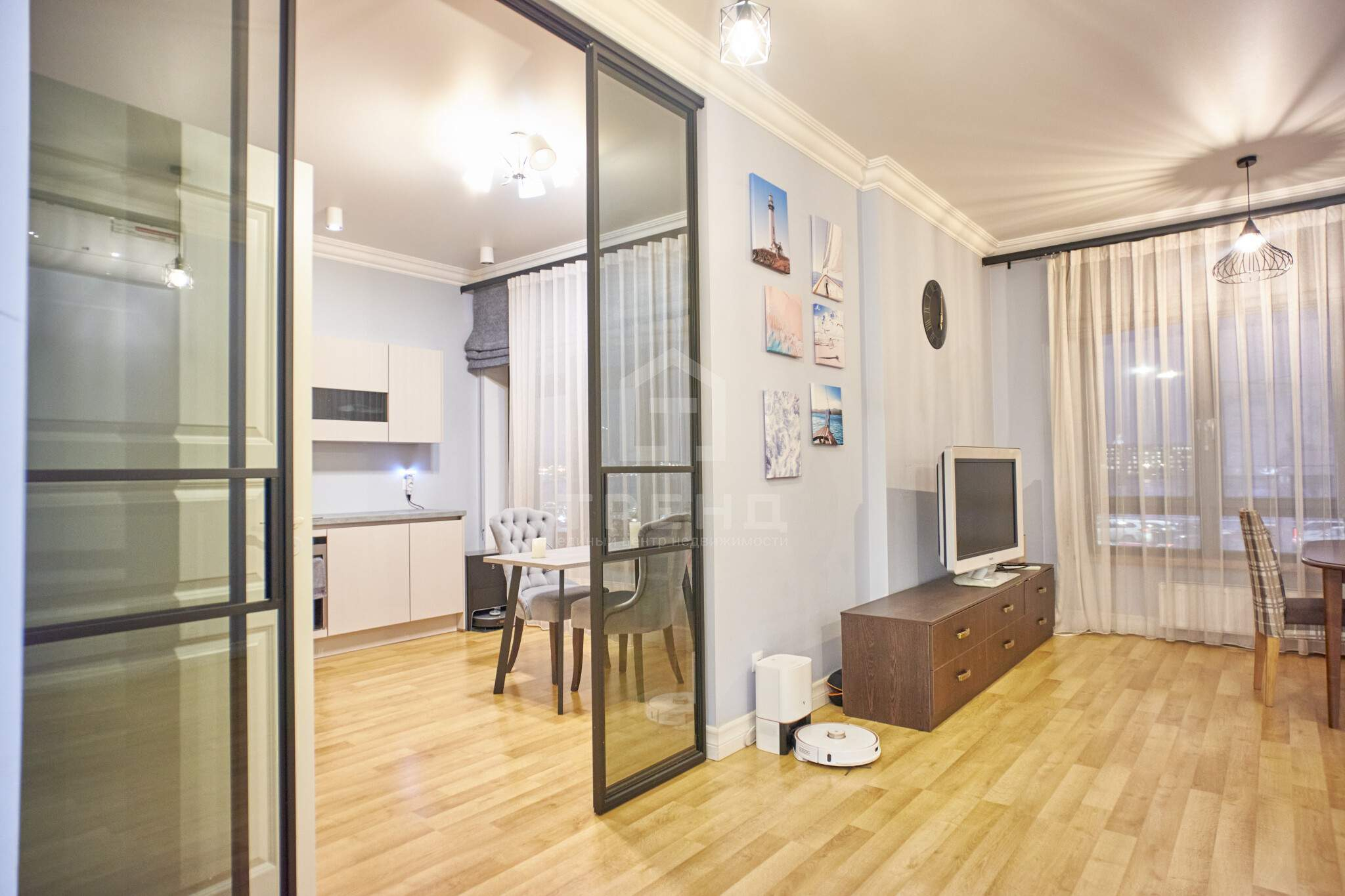 - Большая кухня-гостиная с перегородкой