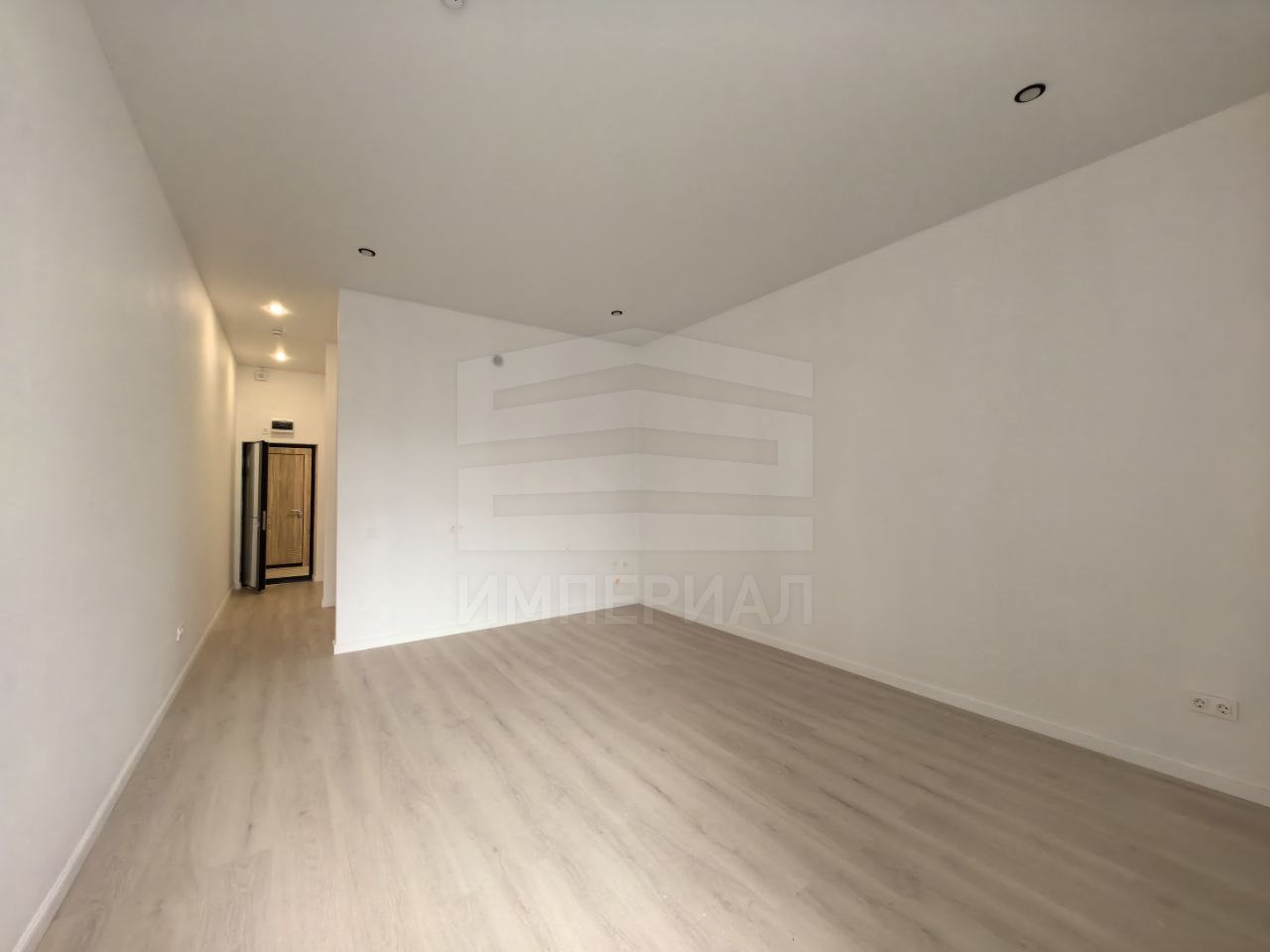 На стенах поклеены обои под покраску, на полу постелен ламинат с плинтусами и откосами. Есть вытяжная вентиляция в санузле и на кухне, выходы хв/гв, место под раковину на кухне. Кроме того, в помещениях уже есть выключатели освещения, розетки для бытовой техники и роутера, а также сделаны закладные для оптоволокна для интернета.