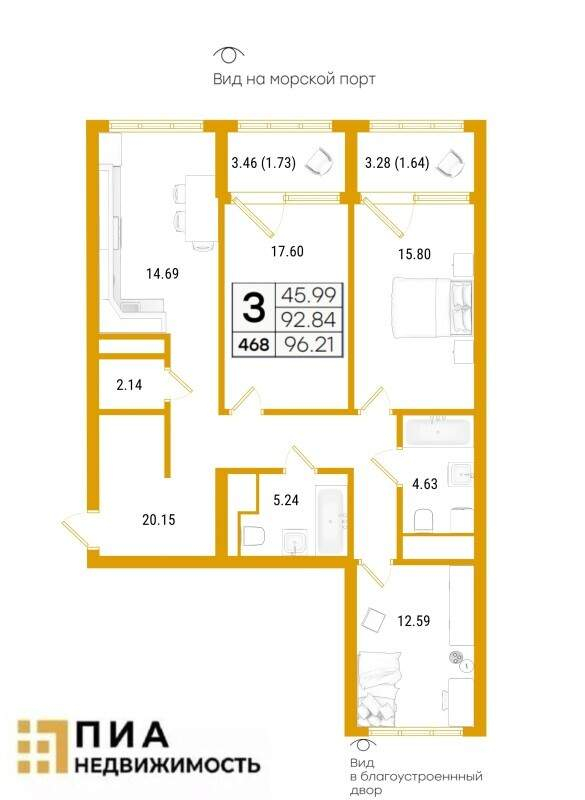 Арт. 15734554. Арт. 8751256 Семейной и IT-ипотек нет. В продаже от юридического лица 3-комнатная квартира в ЖК "GloraX PremiumВасилеостровский" в Василеостровском районе Санкт-Петербурга. Квартира...