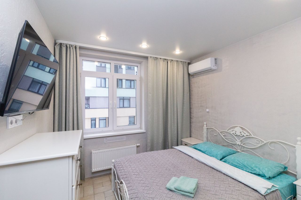 Уютная,светлая однокомнатная квартира с просторной большой кухней.Окна выходят во двор,поэтому очень тихо и не слышно шум дорог.В квартире имеется кондиционер,телевизор,стиральная...