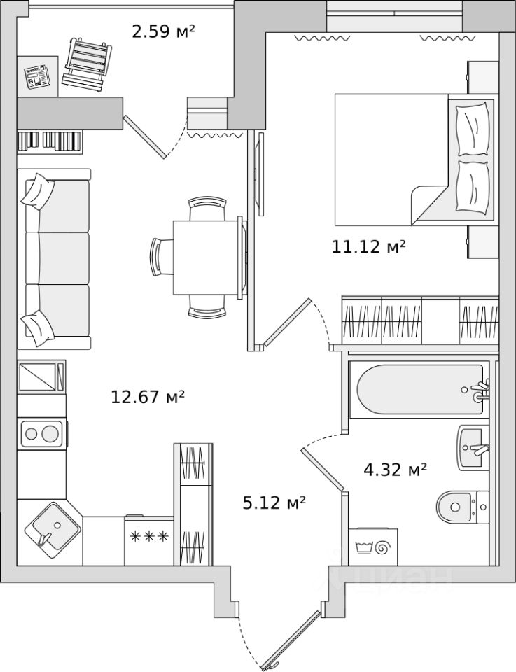 Однокомнатная квартира в жилом комплексе "Имена" — это продуманное пространство для комфортной жизни. Удобная и функциональная планировка позволяет рационально использовать каждый метр: зона...